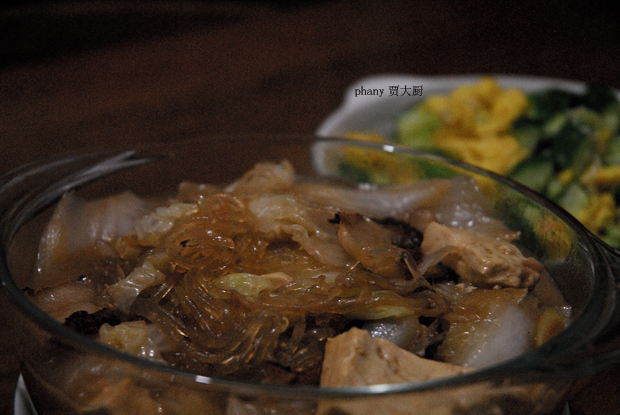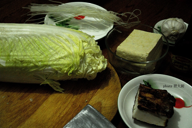 把食材准备好:白菜半棵就够,豆腐半块,过油五花肉要一点,粉条...