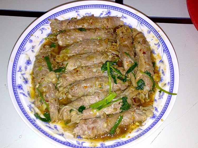 凉拌青瓜、肥羊卷金针菇、酱油鸡、