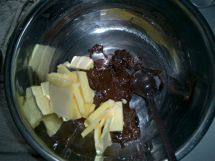 巧克力与牛油拌匀.JPG