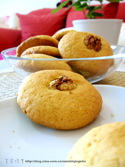 核桃碎的颗粒要小,不要放太多,还可以放入巧克力豆等做成巧克力豆饼干。