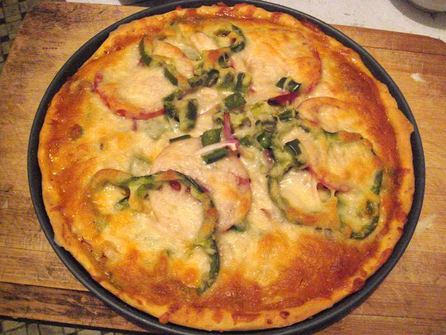 今天本来上夜班,结果同事打电话来说叫我休息,真开心吖。反正闲着没事,想到要做很久的pizza,一兴起就去市场买了材料,回来兴冲冲的做了起来。