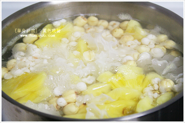 一部分菠萝煮银耳汤.感觉味道会清新很多。还有芡实<>莲子..