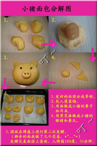 今天小表弟要来我家,特地做了这个小猪面包,谁叫我最近处于制作面包的狂热期,而且小表弟是个超级面包迷,很给我面子滴...捣鼓了一下午,好可爱啊,自己都舍不得吃,奶奶吃一个,老爸吃一个,剩下的全部被小表弟拿回家啦。我只有看图咽口水啦...呜呜...