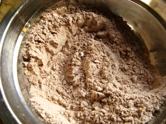 2、40G低粉、40G粟粉、20G可可粉拌匀并过筛