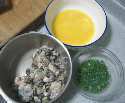 做法很简单,海蛎洗净沥干水,一定要把水分控干哦,因为接下来要把它们个个入油锅很折磨一番,要是水分太多的话,容易爆锅.