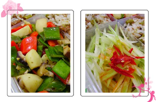爱心盒饭41:泡豇豆肉沫炒饭+凉拌西芹+素什锦