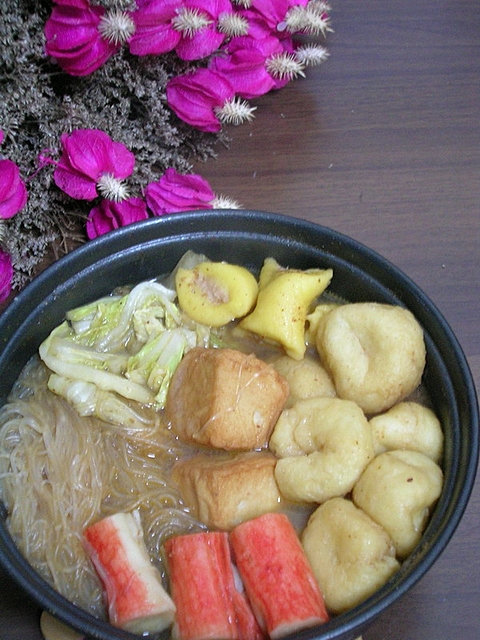 所有材料放入水里煮滚,加盐、沙茶酱煮至如味