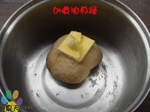 揉成光滑面团之后再加12g黄油,揉至出筋~