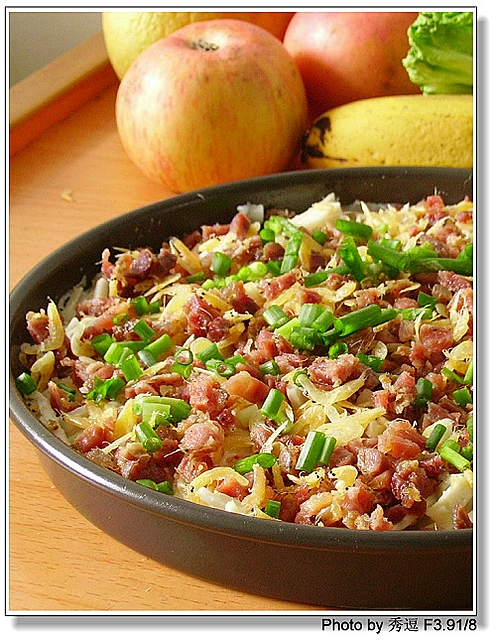前天做了香芋肉松饭团,还剩下半个香芋,为了不让它们坏掉,一定要在今天消灭它们。嘿嘿,成品看起来,好像海鲜腊肉批萨。