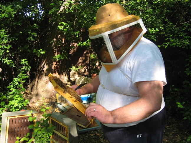 听了埃文的解释就不那么怕蜜蜂了,有些时候还去帮助割蜜,在打开蜂箱以前将一些干草点燃,用专门的容器将烟雾喷在蜂箱上,蜜蜂闻了这种草香就会变得很温柔,任你摆布。当然最心的就是吃到蜂蜜的时候,那种花香融在密中,真是人间美味。