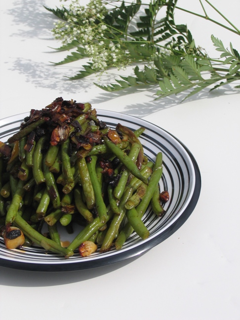 干扁豆角: 做法:葱蒜炒香,放入豆豉,放入豆角小火闷10分钟加盐糖即可。