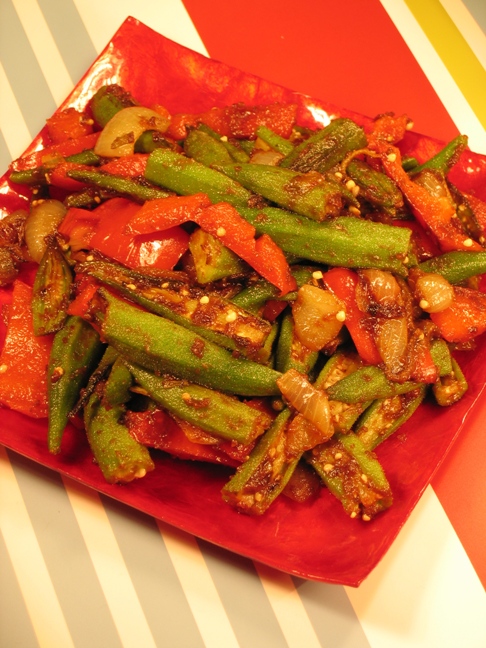 咖喱秋葵 做法:圆葱炒香,放入秋葵炒5分钟放入咖喱粉盐糖即可。
