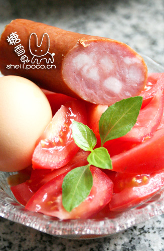 材料:鸡蛋一个、蕃茄两个、哈尔滨红肠一小段(这是在冰箱里发现的剩余惊喜,没有也可以不加)、我还在阳台摘了几片金不换(香草是越摘长得越茂盛的!) 做法:就像普通的蕃茄炒鸡蛋一样,不过最好汁多一点,捞饭好吃~ ![]()