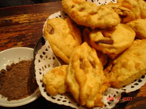 接下来是炸茄荷,椭圆的外形,外焦里内,再加上特制的焦盐儿,简直就是美味。