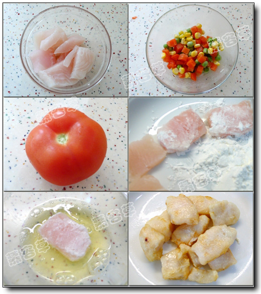 做法: 龙俐切块后沾满生粉裹蛋清后炸透; 捞出沥油后再回锅炸一次待用; 起锅后倒入杂菜粒、西红柿取中间的芯儿一同放入略炒,加入炸好的龙俐块,调味后勾芡上碟。 ![]() 页码:[1] [2] [3] 第2页、共3页