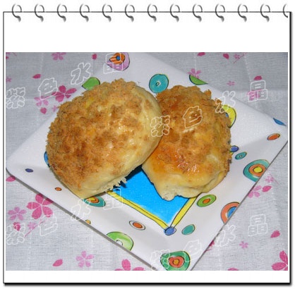 2.取出发好的面团,分割成小团,滚圆松弛10分钟。 3.面团整形后再放入湿润温暖的地方进行第2次发酵。 4.发酵好的面团表面刷一层沙拉酱,然后均匀的铺上肉松。 5.烤箱预热170度,中下层18分钟。