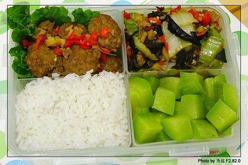 爱心盒饭36:鱼香肉丸子+黑白菜+素南瓜