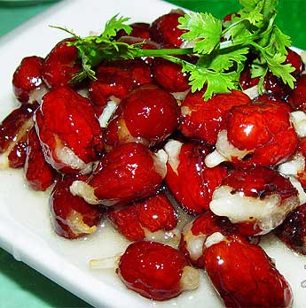 酸酸的、甜甜的,样子很可爱,就像沧州的招牌菜——笑口常开。这道菜是用金丝小枣和白糖制成,先把枣核去掉,再把和着面的糖塞进去蒸熟。吃起来,糖是甜的,枣是甜中略酸的,混在嘴里的感觉一如初恋,发自内心的甜蜜,可吃到后来却有一丝酸涩,那种感觉永远美丽。