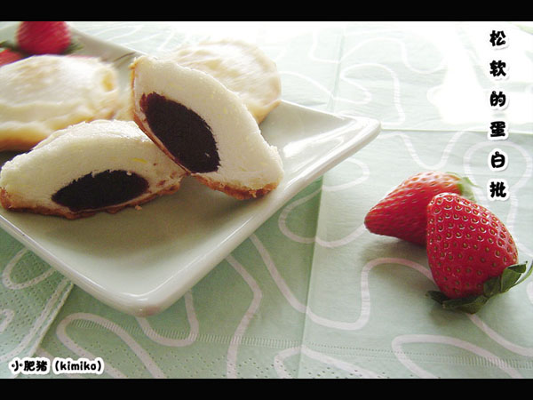 记得第一次吃'雪映红梅'是在酒楼喝下午茶的时候吃的,当时就被这道雪白白的点心吸引了我的目光,好奇之下,拿了一碟品尝,一咬下去,软软滑滑的蛋白里面还有豆沙的清香,就喜欢上它啦!刚好前段时间在网上搜索到做这点心的方子,试了一下,结果出来的卖相没有酒楼的漂亮,算不上雪映红梅,那顶多就算是蛋白批吧!虽然卖相一般,但口感也软滑可口的!