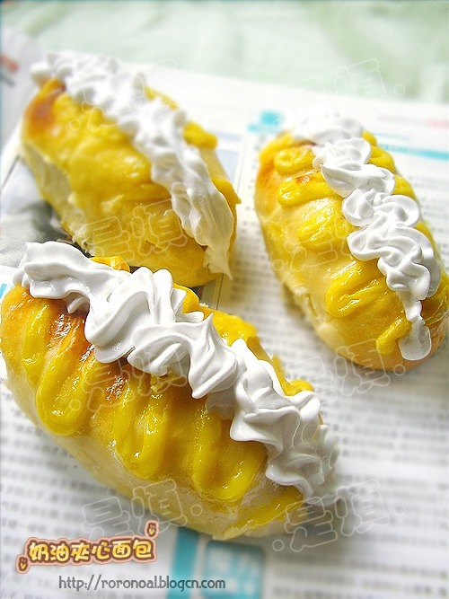 恩..我的面包之旅进行中...---相信很多人都吃过这款面包也相信很多人都喜欢吃这款面包~面包里面夹着浓郁香甜的鲜奶油`~回想起小的时候~虽然吃的满嘴的奶油,却还乐滋滋的笑着..觉得很幸福呢~~