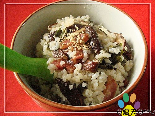 睡醒猫在电脑前直到饥肠辘辘~~昨天没有买菜~~没东西吃~想来想去,不管吃什么都好~最重要是快快送到嘴里~这时候才发现家里存些干货是多么好用~呵呵~~泡了干香菇和裙带菜~切好香肠~全部放在电饭煲里~20分钟后香喷喷的味道飘出来~第一时间先满足胃~