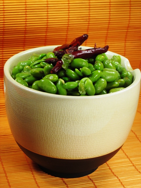 毛豆仁放花较大料、辣椒、小葱、盐糖煮10分钟,烤箱350华氏烤5分钟即可。