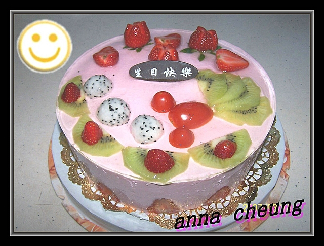 今天是老公契仔的牛一, 我就送上亲手做的蛋糕, 他妈妈早就说好,不要太多水果, 可以用番茄仔,正好可以给我发挥一下, 做了一条金鱼, 够另类的吧!