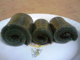 某日睇左小肥猪介绍的黑芝麻卷,于是决定尝试一下做,可惜走了多家超市都找不到芝麻酱,最后决定用芝麻粉一试。我将芝麻粉同糖、水一齐煮滚后再加入粉酱中,最后上碟蒸。做出来一大一中一细,岩晒我同爸爸妈妈吃啊。哈哈!!