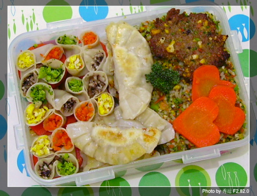 爱心盒饭30:四喜系列(蒸饺、锅贴、炒饭、煎肉饼)
