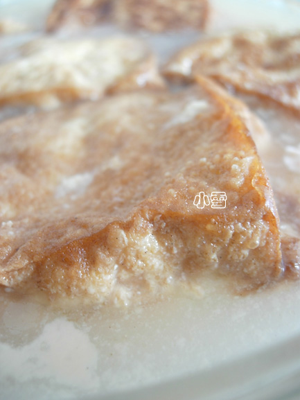 每逢过年家里都会做一两桌豆腐。泡黄豆、磨豆浆、过滤豆渣.......都是老妈一手泡制,我们就在旁边帮手,当然是一边吃一边看着老妈忙个不停的样子(西西...)。从煮透的豆浆、豆腐花、炸豆腐.......每个过程的成品我们都要吃上一碗,所以等老妈把豆腐做好了,我们都已经饱了,又不用吃饭了...... 磨一桌豆腐,我们可以吃到豆浆、豆腐花、炸豆腐、豆波、豆腐干、红心豆腐菌等等,每种吃法都爱吃,百吃不腻。现在出来在外,最回味的就是臭豆腐,因每年回家时间不长,吃不到香喷喷的臭豆腐。今年心痒痒的,特从家里打包过来,让我解了馋。