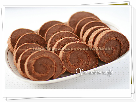 这些都是第二天拍的了.总共做了...20个好像.这盘是剩下的了.也是整型比较不够漂亮的几个.感觉第二天皮皮有点回软了.放进烤箱又叮了一分钟.厚....立马又香酥起来 ![]() 嘿嘿.真不好意思...又是蛋卷.老老老面孔了.也是当晚的点心之一.因为做这个速度快.又好吃.又能撑门面.所以又做了一盘.赶时间.连果酱都没涂.直接卷起....就这样已经粉好吃喽~~~