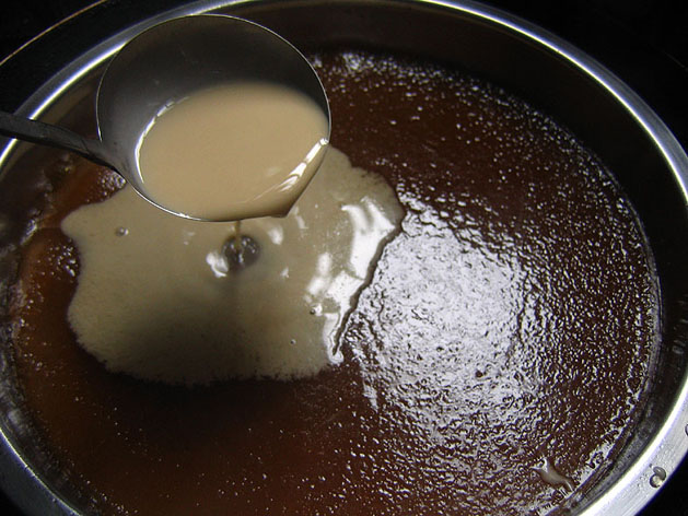 白色牛奶味,上面三层是浅褐色花生浆味。不过今年懒,没弄三色。