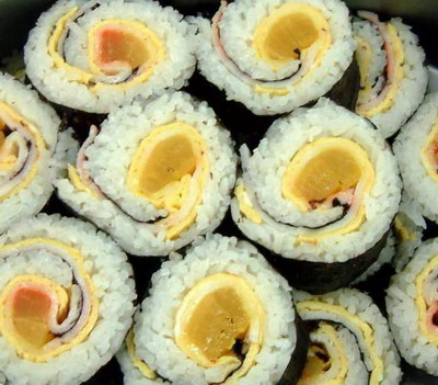 相不相信上面色味并茂的韩国紫菜卷是本人亲手炮制,说实话,呵呵,的确是的。不信吗,还是不信吗算了,还是老实承认吧,的确是我做的,卖相还可以吧受韩流影响,忘记什么时候迷上了韩国的种种,电视剧,淑女服饰,韩语,当然还有我钟爱的美食去吃过几次韩国菜,虽然没有与正宗的比较,但就气氛而言也不