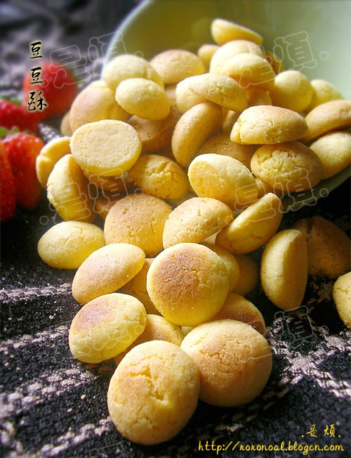 恩..好久没有做东西了呢,今天做了一个豆豆酥..口感嘛,有点像旺仔小馒头..入口即化..老人小孩应该会很喜欢吃的哟~HOHO..今天这个,就是烦烦牌小馒头!哈哈````做法嘛,也是蛮简单的.就是面团很粘手,这点有点烦躁..做了1个多小时呢,最后烤的时候,就只要烤几分钟OK,到最后吃的话..恩..基本上是不停歇的..一口一个..慢慢被我解决掉一大半了呢..嘿嘿----这么可爱,好吃,做法又简单的豆豆酥,你