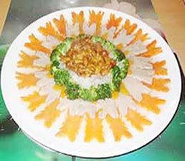 原料:核桃、松仁、粟米 调料:冰糖、高汤、色拉油 做法:核桃仁、松仁用油炸熟。
