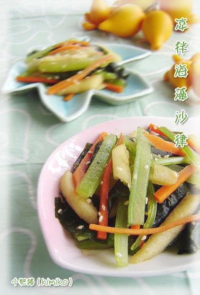 海藻独特的海洋气息+苹果的香甜+香芹的清脆+红萝卜的爽甜=凉拌海藻沙律
