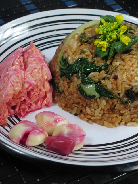 一转眼5年过去了,老妈也从生活中的点点滴滴了解了豆子,现在改口了,有这么个人照顾你,我也就放心了。豆子也学会了几句中文,生日快乐、身体健康、恭喜发财,在节日的时候,他也会通过电话向父母问候,老爸老妈被豆子的发音逗的直笑。 春天的脚步临近了,很多花朵开始发芽了,整土、施肥正是好时节,鲜花有肥料才会开得茂盛。 最近吃素,做了油菜花炒饭、素炒黏糕。 油菜花炒饭: 做法:葱蒜炒香,放入一个鸡蛋炒熟,放入油菜花和米饭炒3分钟,加酱油、糖即可。配上泡菜和蒜头很香。