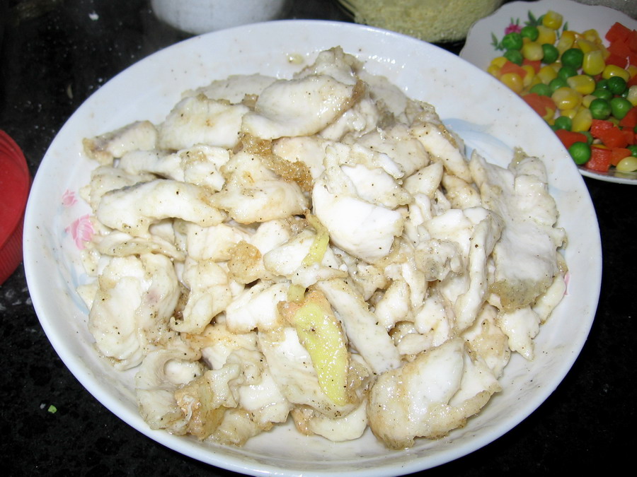 大火热油将鱼片断生待用。