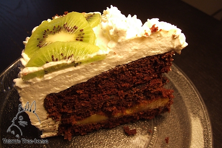 ![]() 烤2层巧克力蛋糕,加了Rum和咖啡。Swiss chocolate + Rum+mango+nutella(hazelnut 、cocoa、)