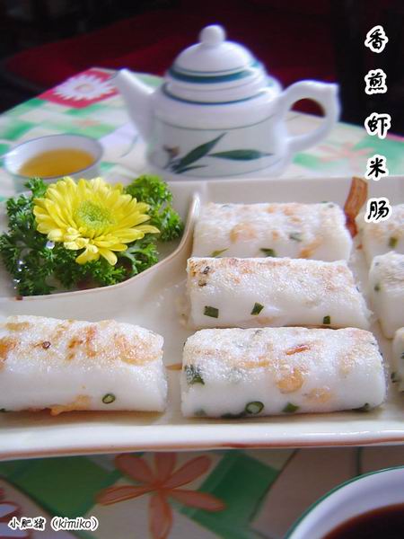 广东人饮早茶,少不了一盅两件,肠粉的受欢迎程度可以从它的品种看出一二,有牛肉肠 、叉烧肠、虾肠、鸡蛋肠、炸面肠等等!不过,我就比较喜欢口感比较香脆的虾米肠,虾米肠既鲜味又可口,醮上酱油就更加好吃。它的做法跟普通肠粉一样,只是在蒸熟后,更加一个步骤,就是煎,煎至金*就可以上桌罗!!!