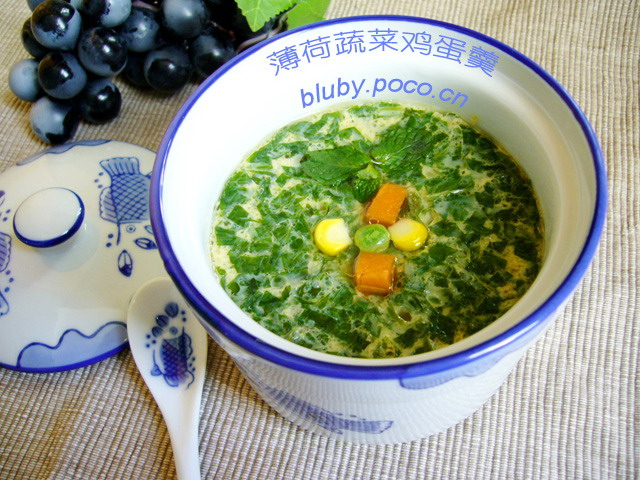 {布式家常菜} 清新感觉——薄荷蔬菜鸡蛋羹