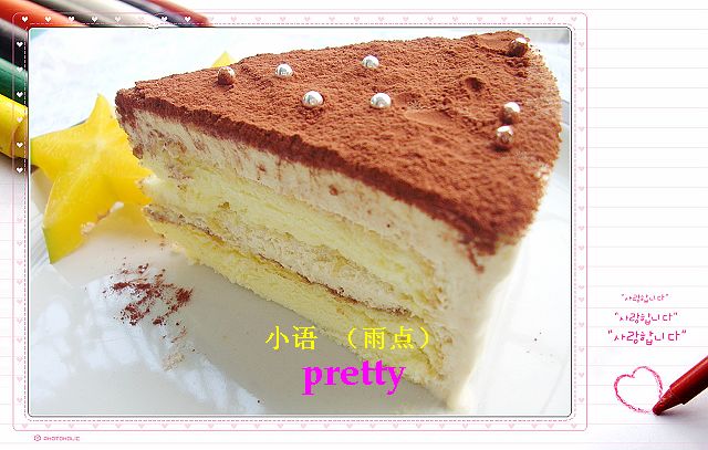 3。离开火源,加入以溶解的鱼胶粉、柠檬汁、芝士(我只用了常用的那种),搅拌均匀。 4。加入打起的忌廉,打均匀。 5。再依个人口味加入咖啡汁。 6。将已经混合的芝士馅料加进预先做好的饼底上, 7。最后撒上可可作装饰。。。