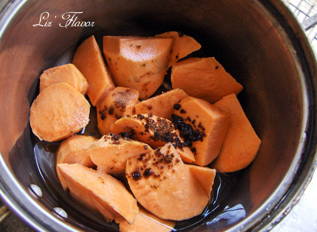 因为香酥里没有加红糖,所以煮番薯的时候加了红糖(煮的时候注意搅拌,不要粘锅咯~~~)