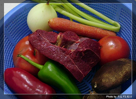 牛肉、番茄、芹菜、洋葱、胡萝卜、香菇、青椒、甜椒把这些通通剁碎,番茄我是用食品加工机打成汁的,然后这些放在一起煮啊煮,牛肉要先和番茄汁一起煮哦