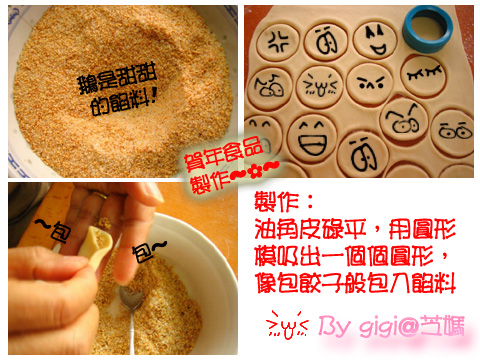 這些是鵝包噠~~~~第一次算包得不錯吧~~咔咔~~鵝要搞搞震~~拿出鵝啲“駕撐”(工具)出來~做出奇形怪狀~三尖八角啲油角~~咔咔~