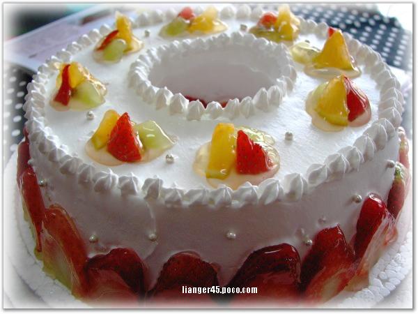 这是跟上个蛋糕一起做的..风格差不多..不同的是我里面烤的是双层的戚风蛋糕..不过不能切开看拉...因为得送人..我觉得真品比较好看...我照象不大好..好象有点暗..不过好象比以前进步点了吧..大家都说我的戚风蛋糕超好吃的啊..有成就感..我这个也是新的配方做的..是我试验了将近10个戚风蛋糕才成功的配方..非常不容易的..我觉的戚风蛋糕好吃的关键在于水的多寡..这是我烤了将近50个戚风蛋糕的心得拉..