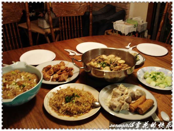 朋友生日,大家都聚在一起做了很多好吃的,我和larry包了做饭的活,其他人就做蛋糕。做了这么多人的饭菜,累得象只狗一样,哪里还有心思来看拍照片哦,随便照了一些算是完成任务了!