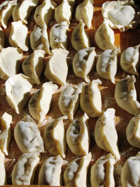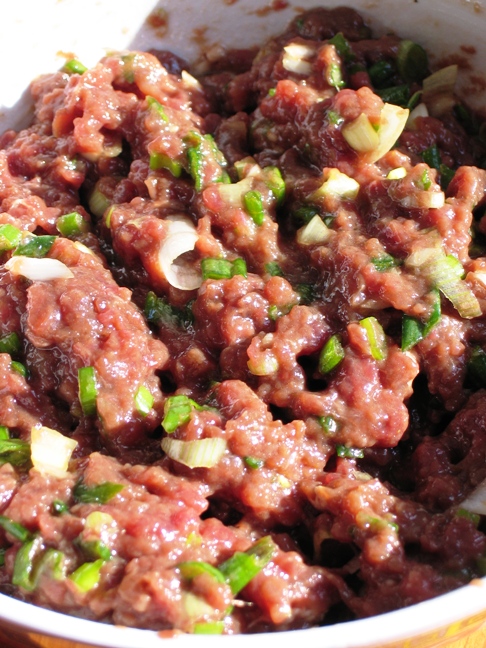 昨天的鹿肉还剩下一半,本着"动物们不能白死"的原则,今天继续吃.换了一种做法,做饺子馅,比烧烤好吃多了.鹿肉饺子有一股驴肉的味道,非常鲜美.这么好的东西不能独享,请了所有的好朋友来尝尝,大家都称赞这种方法不错. 鹿肉饺子: 做法:鹿肉切碎,放入葱花,少许水,油各种调料拌匀.然后包饺子.因为人多做了煎饺,蒸饺,水饺,还是煎饺好吃. 吃饺子的时候用的是泡蒜的醋,咬上一口蒜,真香.