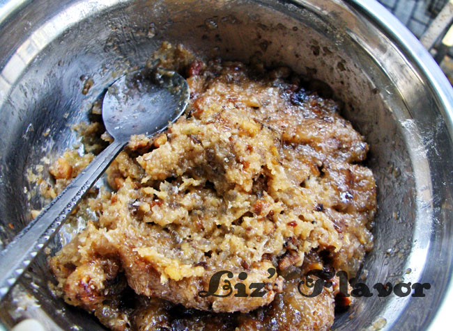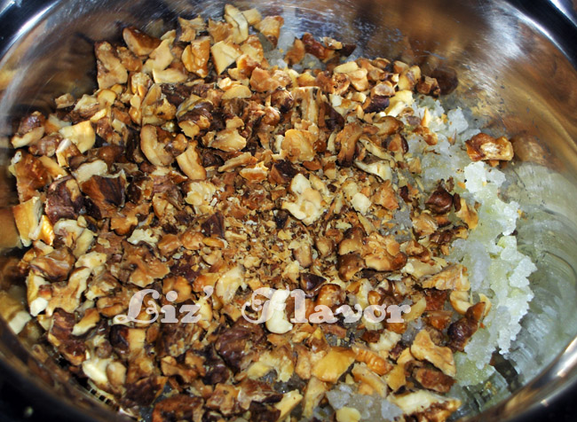 没有搅拌机,糖冬瓜切碎,加入烤过的核桃,加了好多核桃,爸爸妈妈喜欢吃这个