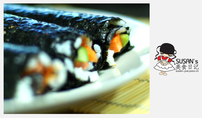 这个的做法真的没什么好写的,里面放的都是我喜欢的酱和蔬菜,要说是寿司的话最多也只是形似啦。呵呵:)